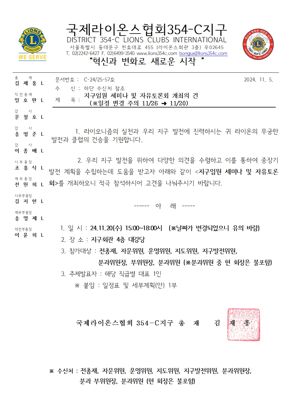 로그인 라이온스 협회 창시자소개 라이온스협회소개 목적 및 윤리강령 라이오니즘 주요 봉사 활동 LCIF 지구소개 총재인사말 조직도 역대총재업적 분과위원장소개 지역지대 편성표 찾아오시는 길 클럽광장 클럽소개 클럽봉사소식 봉사소식 행사 동영상 행사 앨범 커뮤니티 공지사항 행사 일정 자료실 라이온지 기부금사용실적공시 (재)삼오사 씨지구 장학회 재단소개 이사장 인사말 장학재단 연혁 함께하는 사람들 정관 및 규정 역대이사장 찾아오시는 길 재단소식 장학사업 기부금사용실적공시 후원안내